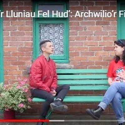 Kate Woodward a Greg Bevan yn trafod prosiect Hanes y Fideo Gerddorol Gymraeg