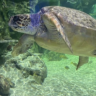 A loggerhead turtle named Antiopi has travelled from Scarborough to Brighton.