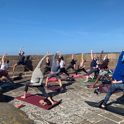 Our reporter Chris Craddock trying out yoga for Wellness Wendesday