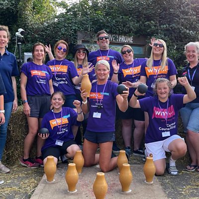 Frome fundraiser breaks record for the number of people playing skittles in eight hours. 671 people played on the alley outside Frome Library. Jack Killah talks to organiser Rachel Clark and Gemma Wilkes from counselling charity We Hear You.