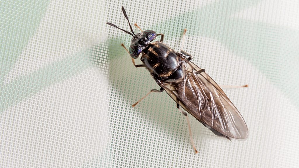 As populations increase, so does the waste they produce. As they outgrow existing sewage systems, new technologies have arisen to help manage surplus waste in a clean and cost-effective way. Sanergy, a company based in Nairobi, has turned to the black solider fly for a solution. As Sheila Kibuthu explains, they collect waste from agriculture, street markets, food processing businesses as well as human waste from the company’s own waterless toilets. They then transport it to a processing plant where the waste is first eaten by fly larvae. Once fattened up, the larvae are dried to form a protein feed for animals and their waste is further processed into cooking fuel and fertiliser. (Image: Black soldier fly, Credit: Sergio Yoneda / Getty Images.)
