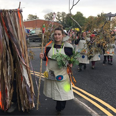A dead tree's being taken on a tour of Coventry city centre. It was chopped down to make way for HS2 and is now part of a piece of performance art by women in the city.