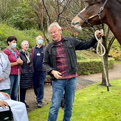 Doc Martin star and Dorset resident Martin Clunes visits Weldmar Hospicecare with horse Bruce
