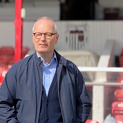 Grimsby Town Chairman Jason Stockwood speaks to Matt Dean ahead of the game.