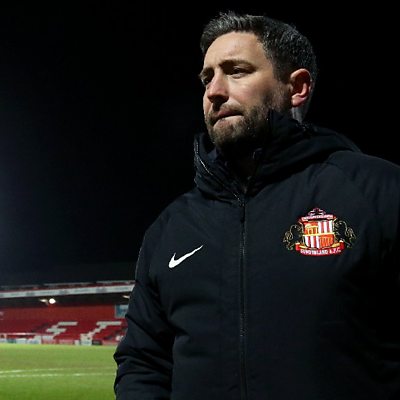 Lee Johnson talks to Nick Barnes before Sunderland v Portsmouth in EFL League One.