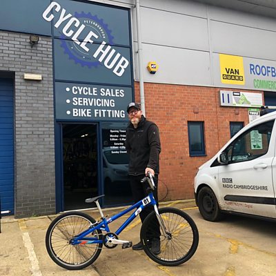 Paul Maidment from Peterborough Phantoms BMX club gives John Devine some riding tips.