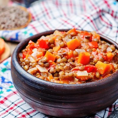 A Healthy nutritious, economical, tasty one-pot dish. Recipe: 1 tsp dried cumin seeds 1/2 a tsp dried chilli flakes 1 tsp dried oregano 1 tsp paprika 1 tbsp oil 1 onion chopped 2 ribs celery chopped 1 medium carrot chopped 1 small leek chopped 2 bay leaves 1 can chopped tomatoes 200g basmati rice 200g green uncooked lentils rinsed Half a chopped butternut squash 100g frozen spinach 1.5 litres of vegetable stock approx. Salt and pepper to season Method: Place the cumin seed and the chilli flakes into a heavy based dry pan for about 1 minute to dry fry over a low heat. Be careful not to burn them. Add the oil to the pan into the cumin and chilli. Then add the onion, carrot, celery, leek and sprinkle the oregano and paprika over. Allow to cook gently for approx. 10mins over a medium heat. Stir in the tomatoes, rice, butternut squash, bay leaves and the lentils along with the vegetable stock and simmer gently for 40 mins until the pulses are all cooked and the liquid has been absorbed, add more vegetable stock if it seems dry. At this stage check the dish for seasoning. Add the frozen spinach 10 mins before taking the stew off the heat. This should make around 7 portions if using for meal preparation. Freeze in airtight containers once cooled.