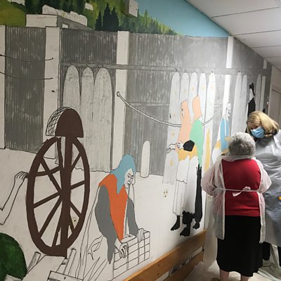Staff and residents at Jersey Cheshire Home are painting a mural of the Rope Walk