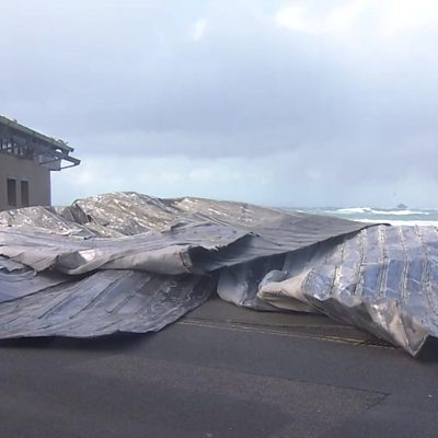 Fixing the roof at Sennen Cove Lifeboat station after Storm Eunice