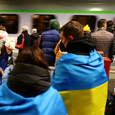 More than one million civilians have fled Ukraine, according to the UN. High numbers of Ukrainian refugees have arrived at the main station in the German capital, Berlin, where they were greeted by police and volunteers offering help, and these have been increasing over the last three days. A volunteer describes how she had been communicating with others on social networks to find out what was needed, and how accommodation and transport for the people arriving from Ukraine is being offered. Damian Grammaticus describes how what started as a small group of volunteers has now taken on more of an official structure to cope with the increasing influx. "We have a room free at the moment. I have a car, so it's something easy I can do." Photo: Volunteers wait for refugees as a train from Poland arrives at Berlin's central train station Credit: Reuters