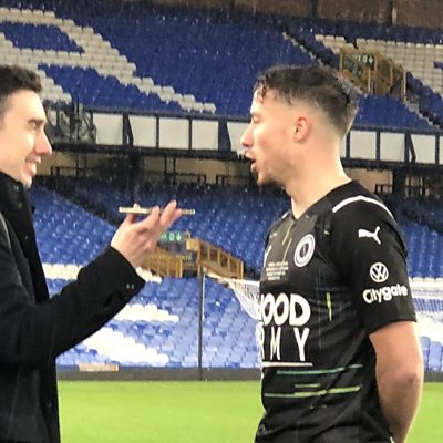 Boreham Wood's Kane Smith spoke to Ollie Bayliss after facing Everton.