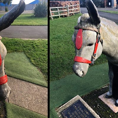 A statue in honour of a couple who used to run donkey rides, has been vandalised