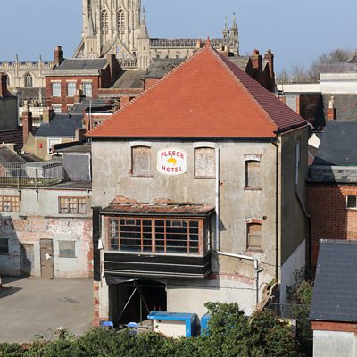 One of Gloucester's oldest buildings in the city centre is undergoing a £3.9 million pound refurb. Historic England have teamed up with Gloucester city Council to make sure the Grade 1 listed Medieval Fleece Inn is preserved. The project will take place over the next three years as part of major heritage conservation works in Gloucester. BBC Radio Gloucestershire's Edward Rowe has been along explore it all with Conservation officer Kate Biggs and Main Project Officer Claire Dovey-Evans.