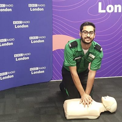 Dr Zain trains Eddie in CPR and using a defibrillator