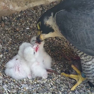 Chicks have emerged from three of the four eggs at the top of St Mary Magdalene Church. The birds are monitored by four cameras and people can follow their progress online and in the church Robin Morrison, from Taunton Peregrine Project, gives Claire Carter an update on the birds. Image: Taunton Peregrine Project