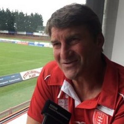Tony Smith speaks to Richard Stead following Rovers' defeat at Leeds.
