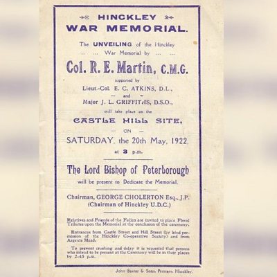 A special ceremony has been organised by the Royal British Legion and Hinckley Borough Council to mark the centenary of Hinckley War Memorial. But time was running out to find the final family to take part. Well after a final appeal on BBC Leicester, historian Greg Drozdz was able to track them down.