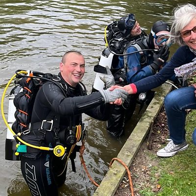 Wedding ring lost in the River Great Ouse is found by Bedford Scuba Divers.