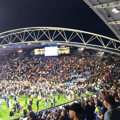A Luton supporter says he was injured when Huddersfield fans threw objects at the crowd.