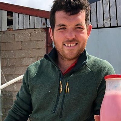 Rhys Hughes yn trafod mentergarwch ar fferm Llwyn Banc, Llanrhaeadr ger Dinbych