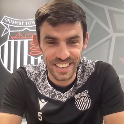 Grimsby defender Shaun Pearson talks to Matt Dean before their play-off game at Wrexham.