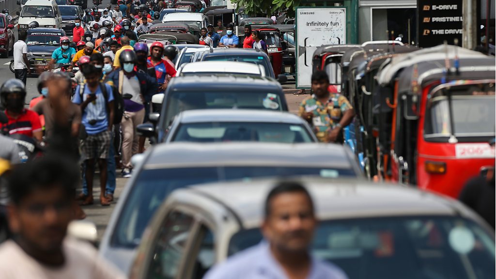 Sri Lanka is experiencing the nation's worst economic crisis since it gained independence in 1948. The new prime minister, Ranil Wickremesinghe, is appealing for foreign help to bail out the government as protests continue because of rising food prices and acute shortages of fuel. Sri Lanka's government has said it needs $6bn to maintain citizens' basic standard of living. Sajid Nazmi, an IT worker in the capital Colombo, discusses the impact of the country's financial crisis on his return home following a long wait for fuel. He says that the queue was so long that he actually started working there, on his laptop, and ended up waiting for eight hours before he could obtain his quota of petrol. He says this kind of wait is normal now, and that the prices, already high, are likely to rise even further, and four-hour power cuts are also a daily challenge. Photo: Motorists queue at a petrol station in Colombo, Sri Lanka, May 2022 Credit: Getty Images