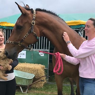 Christine Butler met Sam Churchill (l), Kadie Connelly and Dove the horse