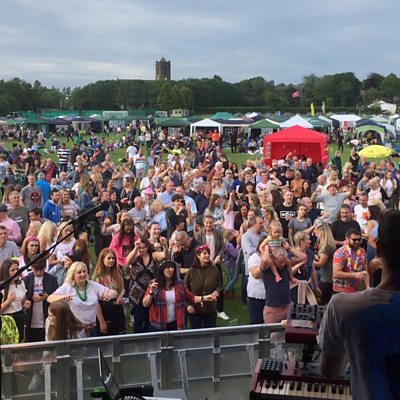 Festival organiser, Phil Thomas, chats to Ian Kennedy.