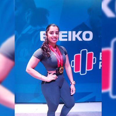 A Warwick weightlifter is hoping her success will be an inspiration to more young women to break into male dominated sports. Karenjeet Kaur Bains is now the All England Bench Press Champion in the Under 69kg Senior Women's class and she's the first Sikh woman to represent Team GB at world level. And she trains with her dad in a converted shed at their home. BBC CWR reporter Richard Williams went to meet her and see if he can build some muscle.