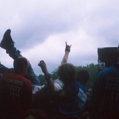 A 67-year-old man's crowd surfing antics halted a concert by The Killers.