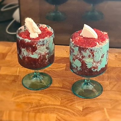 Two large eggs white 120g of caster sugar for the meringues 500g of raspberries 450ml of double cream 3 tablespoons of icing sugar 500g of berries (chef's choice)