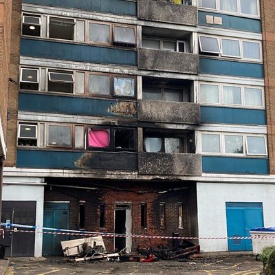 Justin Dealy talks to residents of the Abbey View tower block in Watford.