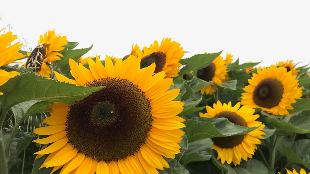 Reporter Grace surprises Spalding firefighters with a bucket of sunflowers.