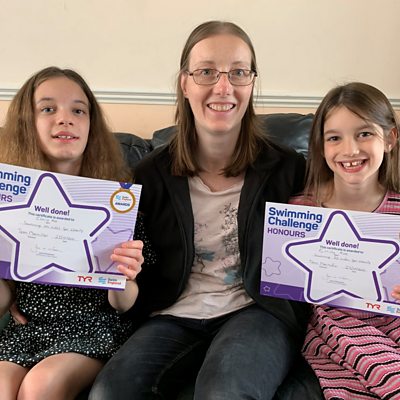 Claire and Emily from Dunstable raised money for a cancer charity by swimming 26 miles after their mum was diagnosed with breast cancer.