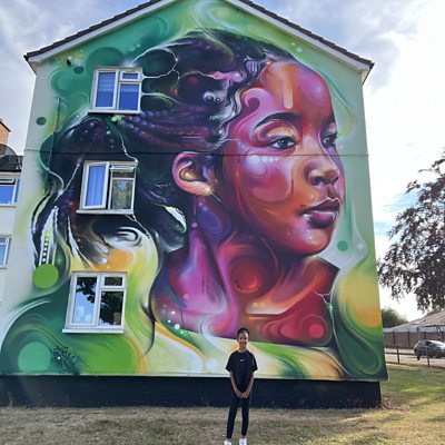 A giant mural of a nine-year-old girl has been painted on the side of a house after she went viral with a performance of a poem talking about being a young, black girl. Nylah, from Cheltenham, made worldwide headlines in June 2020 when she stood up at a Black Lives Matter protest in Pitville Park. Artists from the Cheltenham Paint Festival decided she deserved her own mural so have painted her picture on the side of a three-storey flat block in the town.