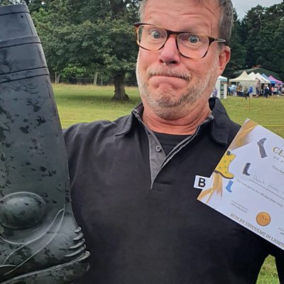 Paul Leather was at the Uffculme Show &could help giving the sport of Welly Wanging a go!