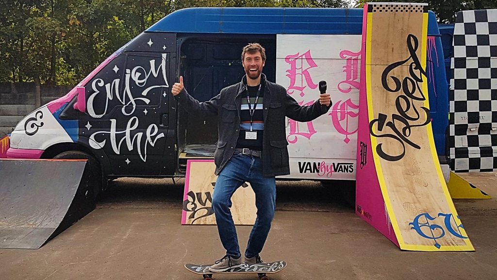 In January, Martyn Williams got an email from Derby artist Melita Berg. She specialises in creating lettering, calligraphy and branding; working with big names in fashion and music festivals. The email said that Melita was working with a fashion brand that's popular with skaters. She was going to turn an old van, destined for the scrap heap, into a skate park. It was all going to be painted in bright colours with ramps for tricks. Almost nine months later, the project's finally complete and Melita invited Martyn to the Albert Looms scrap yard in Spondon to see it.