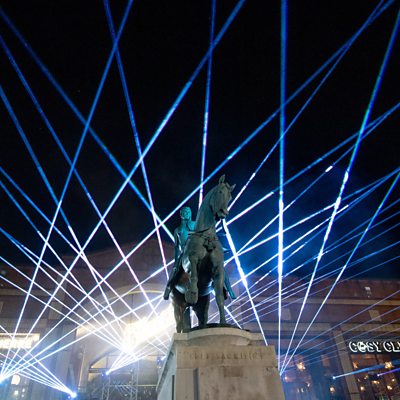 The Coventry Christmas Lights switch on will include a spectacular laser light show. Artist Seb Lee-Delisle has created a laser light show for Broadgate. Mark Radford Photography.