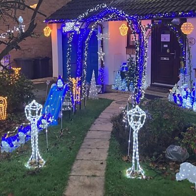 Angela Kalwaites is outside the home of John who's been displaying for years for charity.