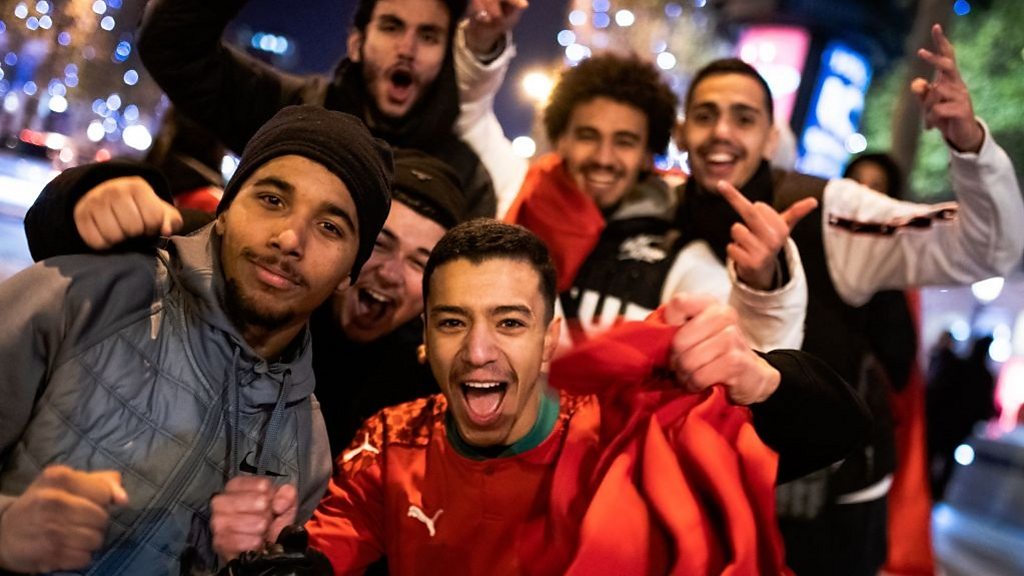 Morocco has finished first in their group and progressed to the knockout stage of the football World Cup for the second time in the country's history. Walid Regragui's men edged past Canada 2-1 to finish top of Group F, the first African team to achieve the feat since Nigeria in 1998. Morocco is the only Arab country to make it this far in the tournament this year - so how do fans feel? (Photo: Morocco's supporters celebrate on the Avenue des Champs-Elysees after their team came first in Group F. Credit: Getty Images)