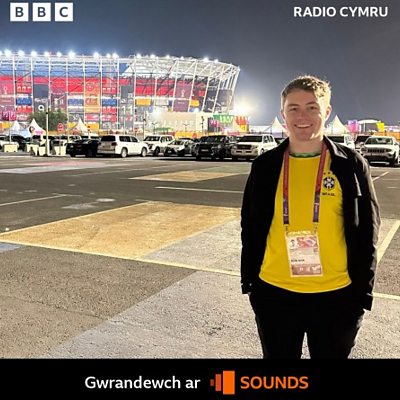 Profiadau Gwilym Huws sy'n gweithio yn seremoni gloi ffeinal Cwpan y Byd