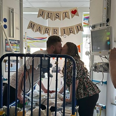 Wedding bells have been ringing at Leicester's Royal Infirmary as a very special ceremony took place in the children's Intensive Care Unit. Sam and Louise wanted their 3 month old baby Hendrix, who's being treated there, to be part of the celebrations - so the wedding was taken to him. They combined their special day with a naming ceremony for little Hendrix who was born with a heart condition. Kerry Tomblin, the non religious chaplain at the LRI, tells Jo Bostock how the ceremony came about.