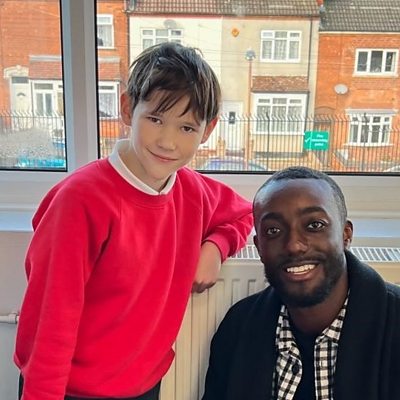 Rakeem speaks to schoolboy Matvii - who came to the UK from Ukraine as a refugee.