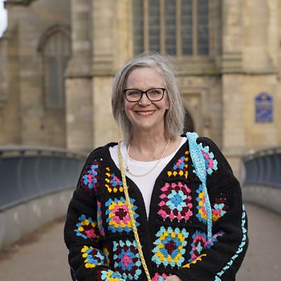 We're trying to break the Guinness World Record for the most people doing crochet in one place at the same time. Adrienne Pollich has come to take part. She's from New York. Andy Twigge spoke to her.