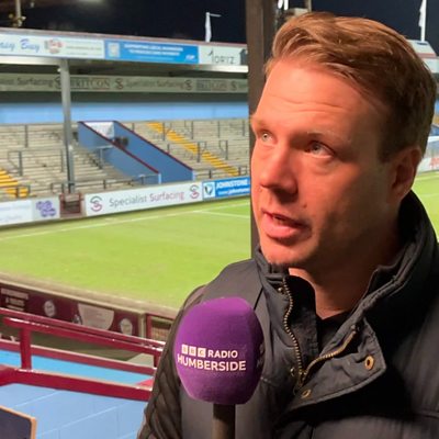 Jimmy Dean talks to Oliver Turner after Scunthorpe's 2-0 win against Altrincham.