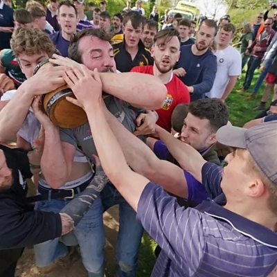Have you ever hard of Bottle-kicking? It's an old Leicestershire custom that takes place in the village of Hallaton each Easter Monday. It is an outdoor sport played across a mile-long playing area, in which two teams attempt to move a wooden barrel across the opposing team's stream at the far end of the area. Records of bottle-kicking date to the late 18th century, but the custom is thought to originate much earlier, from before the Christian era. Ben wen to find out more about it with local blue badge guide, James Carpenter.