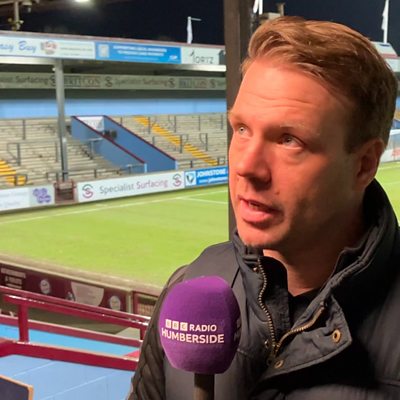 Jimmy Dean talks to Ollie Turner after their 2-0 loss at Gateshead.
