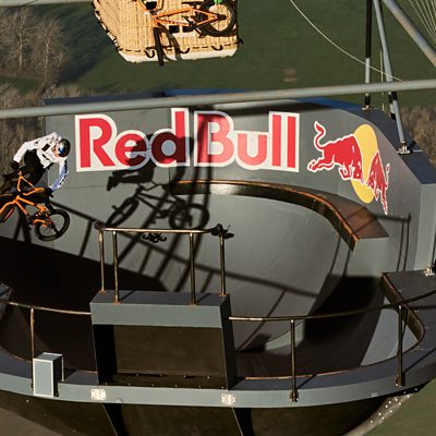 Kriss Kyle performed tricks on his BMX in a skatepark attached to a hot air balloon.