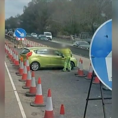 National Highways has condemned a motorist who was caught on camera moving traffic cones on the A12 in Essex so she could get out of a traffic jam. The incident happened on the A12 close to the Marks Tey junction, in a section of roadworks, where traffic had been at a standstill for 15 to 20 minutes due to an accident. A female motorist was then seen getting out of her car, moving two lines of traffic cones out of the way before trying to cross and join a lane of moving traffic. She was prevented from joining the other lane by a highways worker. BBC Essex speaks to Anthony Foulkes, who filmed the incident unfolding from his vehicle, where he was sitting stationary with his engine switched off. A spokesperson for National Highways said: "We take incidents like this extremely seriously. The actions of this driver were inherently dangerous - not only to themselves but other road users as well. "Since this footage was brought to our attention we have been in contact with Essex Police and are working to identify the driver. "At this early stage we believe the incident took place on the A12, close to the Marks Tey junction and followed a nearby collision which our contractors were in the process of helping to recover. "Traffic management measures, including cones and signage, are there for the safety of the public and our workers. Moving them and driving through marked off areas is an offence, a breach of the Highway Code and highly irresponsible. "Safety is an absolute priority for National Highways; we want everyone to get home safe and well, and that goes for our workers too."