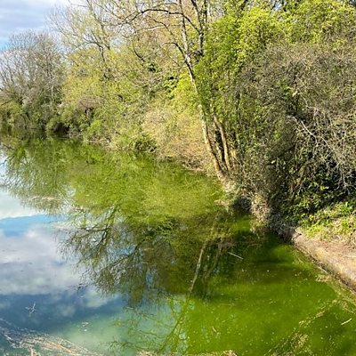 It's that time of year when everything's coming into bloom, but not everything that's growing is welcome. Residents in Glen Parva have been told to keep pets away from the water of a local canal after it turned bright green. Helen McCarthy has gone to have a look.